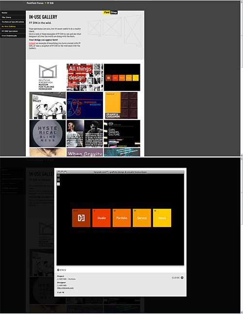 Pomalu se loučím se svým starým logem a komerčním webem. Ten si pro prezentaci použití písma FF DIN vybral FontShop, prestižní portfolio a obchod s písmy. Vzorníky písem jsou hezké, ale užitečnější je vidět jejich reálné nasazení. Podívejte se zde na galerii ukázek od designerů z celého světa.