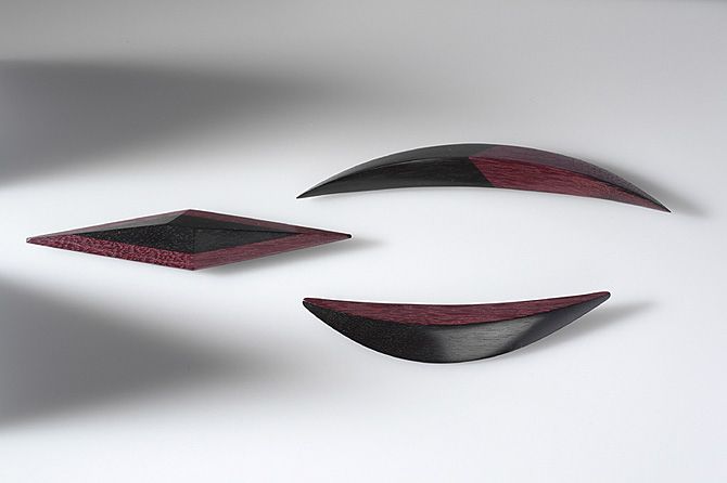 eben, dřevo (Purpurové srdce), ocel, d. 13,1 cm a 14 cm a 16,2 cm