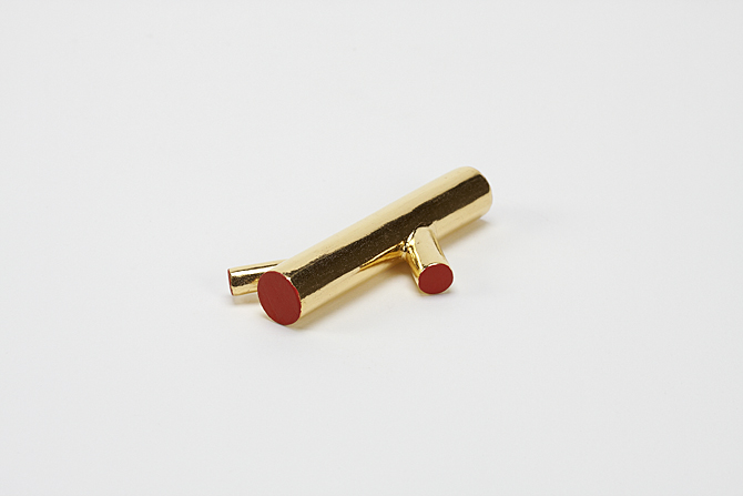 dřevo, plátkové zlato, barva, nerez ocel, d. 9,3 cm